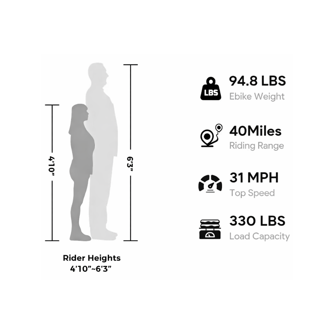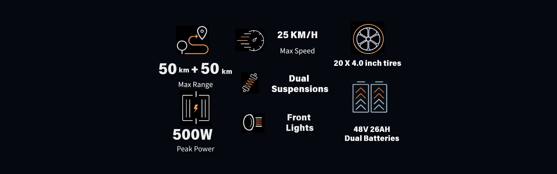 Equipped with two high-capacity batteries, With each battery providing up to 50 km of power, you can enjoy longer rides without worrying about recharging, making it the ideal choice for long-distance trips and daily commutes.